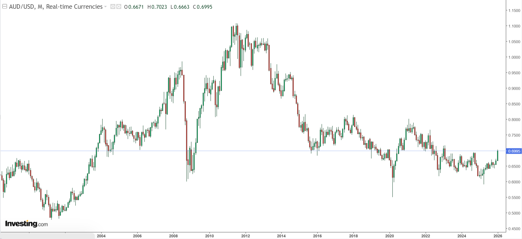 The commodity boom is not a reflation. It is the narrow appreciation of precious and AI metals. Nonetheless, this situation remains bullish for the AUD until iron ore prices begin to decline, which I anticipate will happen this year.