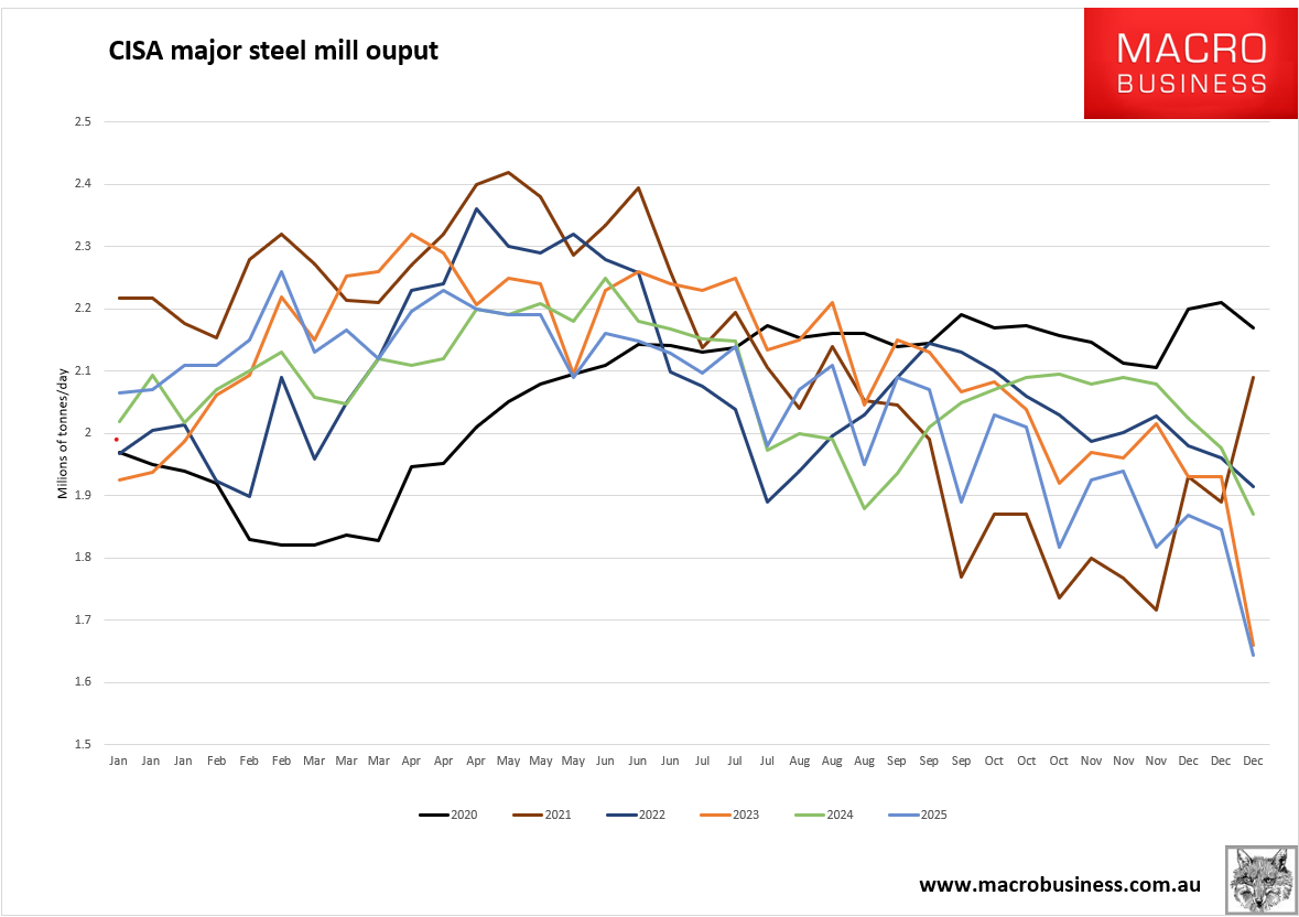 What is worse is that steel inventories at CISA mills are 20% above last year’s levels and are already not much below last year’s February peak.