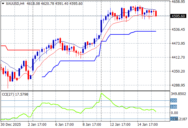 Oil markets are seeing a small reversal with Brent crude pulled back to the $63USD per barrel level while gold has failed to hold above the $4600USD per ounce level with a minor rollver:
