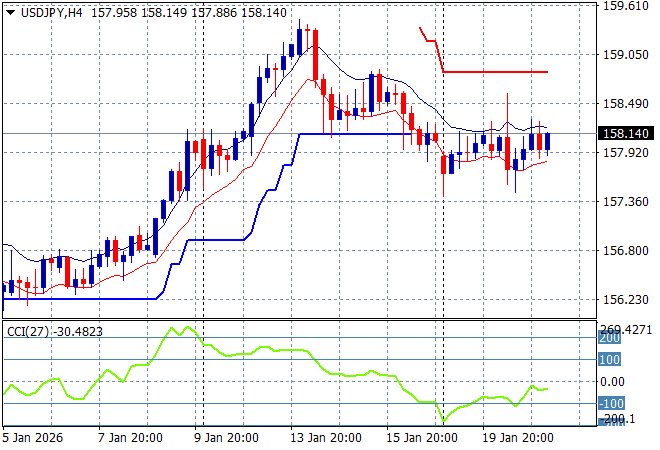 Mainland Chinese share markets are up slightly in the afternoon session with the Shanghai Composite gaining 0.3% to stay above the 4100 point level while the Hang Seng Index is off a little bit at 26450 points. Japanese stock markets are still in retreat with the Nikkei 225 down more than 0.5% to extend below the 53000 point level while Yen is steady against USD in the wake of the election call with the USDPY pair just above the 158 level: