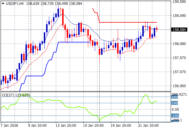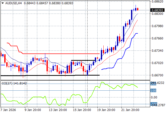 Asian share markets pivoted around inflation prints and other macro news as the chaos from Davos dies down although the TACO trade remains in play. The USD remains under pressure against almost all major undollars particularly antipodean with the Australian dollar pushing through resistance to head above the 68 cent level while bond market stress in Japan is keeping a focus on Yen valuations.