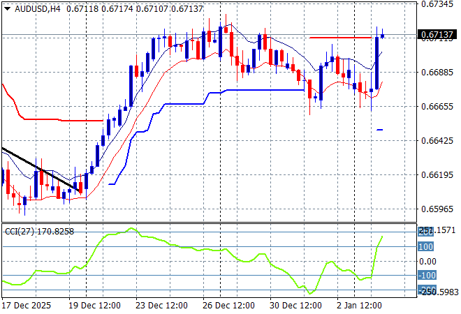 A near two year low in the US ISM manufacturing print saw the USD take a dive while other risk markets repositioned after the Trump regime’s invasion of Venezuela with oil stocks lifting amid a small bid in Brent and WTI markers. Wall Street was outpaced by European and Japanese stocks while Pound Sterling and Euro both fought back after a small new year rally in King Dollar. Bond markets also saw a surprise bid on geopolitical uncertainty – who is next in the firing line as the old order crumbles – with the Australian dollar bouncing back above the 67 cent level as we prepare for the long wait til the February RBA meeting.