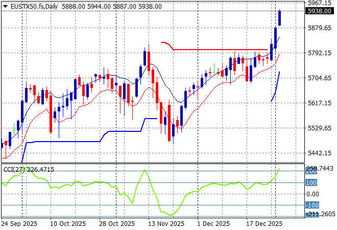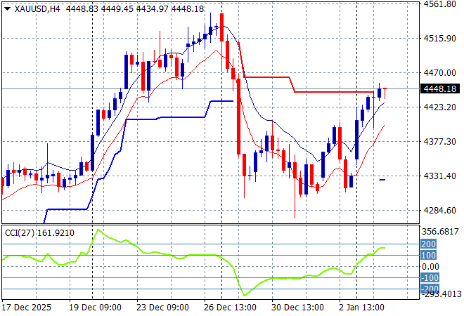 Gold had been using the $4300USD per ounce level as strong support throughout the NY/Xmas period and has made a comeback on USD weakness with a surge above the $4400USD per ounce level overnight.