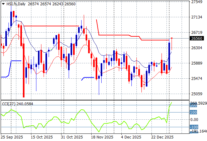 Looking at stock markets from Asia from yesterday’s session, where mainland Chinese share markets are seeing solid upside with the Shanghai Composite up more than 1% to climb above 4000 points while the Hang Seng Index has put in a scratch session to settle at 26317 points.