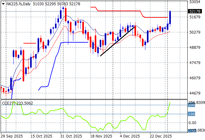 Japanese stock markets are doing all the heavy lifting with the Nikkei 225 surging nearly 3% higher to 51905 points.