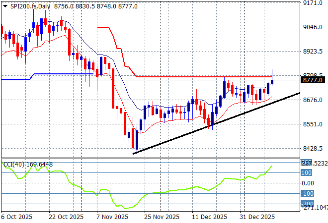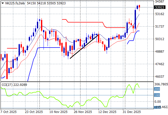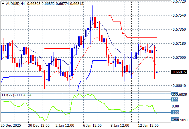 Overnight saw the release of the “official” US CPI print for December, and while the outcome was softer than expected risk markets were more wary of the continued political pressure on the Fed from the Trump regime and the burgeoning US government debt levels. Some earnings reports on Wall Street gave pause to the actual underlying economic strength in the US economy, while the USD itself rallied against most of the major currency pairs. Oil prices continue to spike on the Iranian situation while precious metals took a very small breather as Bitcoin rumbled back to life. The Australian dollar reversed course sharply to get back below the 67 cent level.