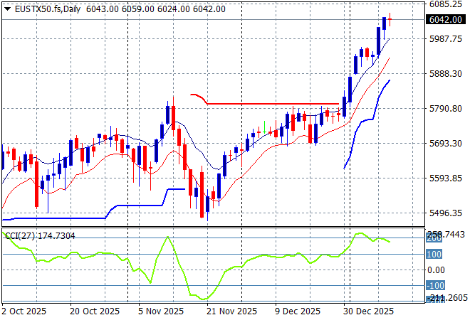 European markets were a bit mixed overnight with some pushing and shoving across the continent as the Eurostoxx 50 Index closed just 0.2% higher at 6029 points, still keeping the recent rally going.