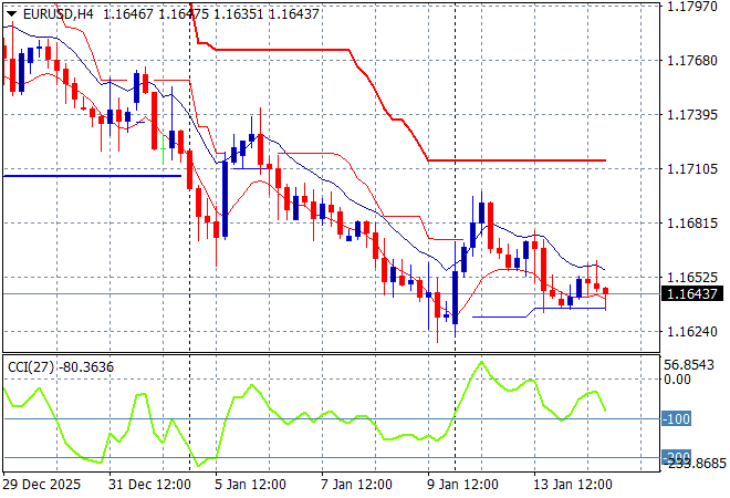 Currency markets have failed to reverse their move against King Dollar even though there’s been plenty of catalysts to pivot off (poor NFP, Powell attack, Venezuelan invasion) with the Iranian situation firming into a safe haven play. The USD reversed course briefly again overnight on the PPI print but then Euro continued its slide to stay up below the mid 1.16 level with other majors not making any meaningful gains either.