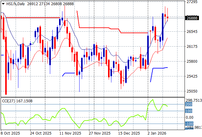 Looking at stock markets from Asia from yesterday’s session, where mainland Chinese share markets stalled again in the afternoon session with the Shanghai Composite up just a handful of points while the Hang Seng Index has lifted some 0.5% to 26999 points.