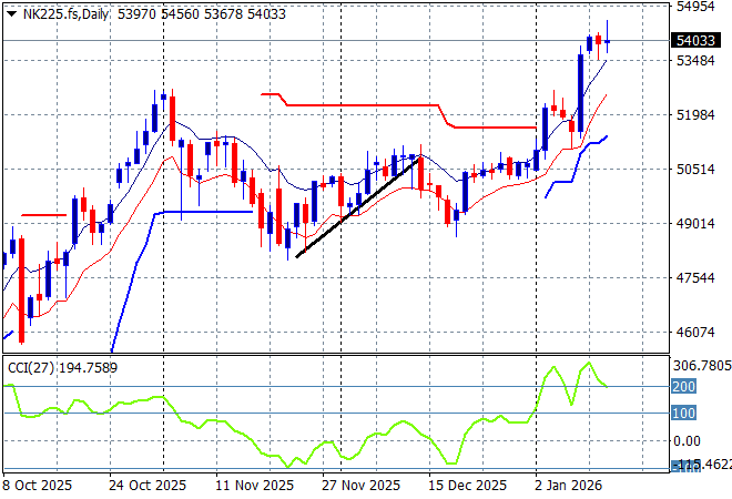 Japanese stock markets continue to be bid strongly with the Nikkei 225 putting on another 1.4% to crack the 54000 point level.