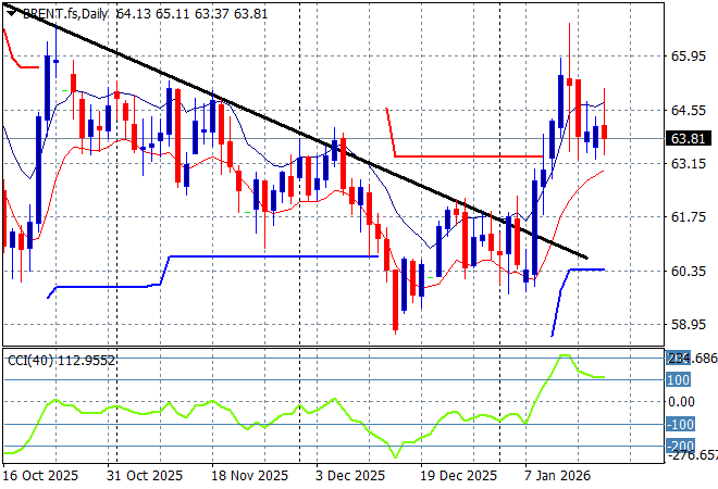 Oil markets have been on a multi week/monthly downtrend prior to the Venezuelan invasion but shot out of the gate last week with some big gains before getting ahead of itself. Brent crude is again holding around the $64USD per barrel with the potential for more falls if the “peace” Trump regime doesn’t start shooting soon.