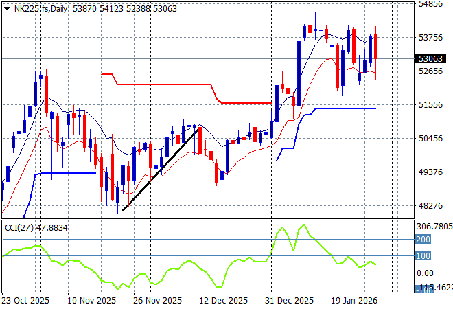 Japanese stock markets were just back in the positive zone with the Nikkei 225 up nearly 0.5% at one stage before finishing flat to stay just above the 53000 point level.