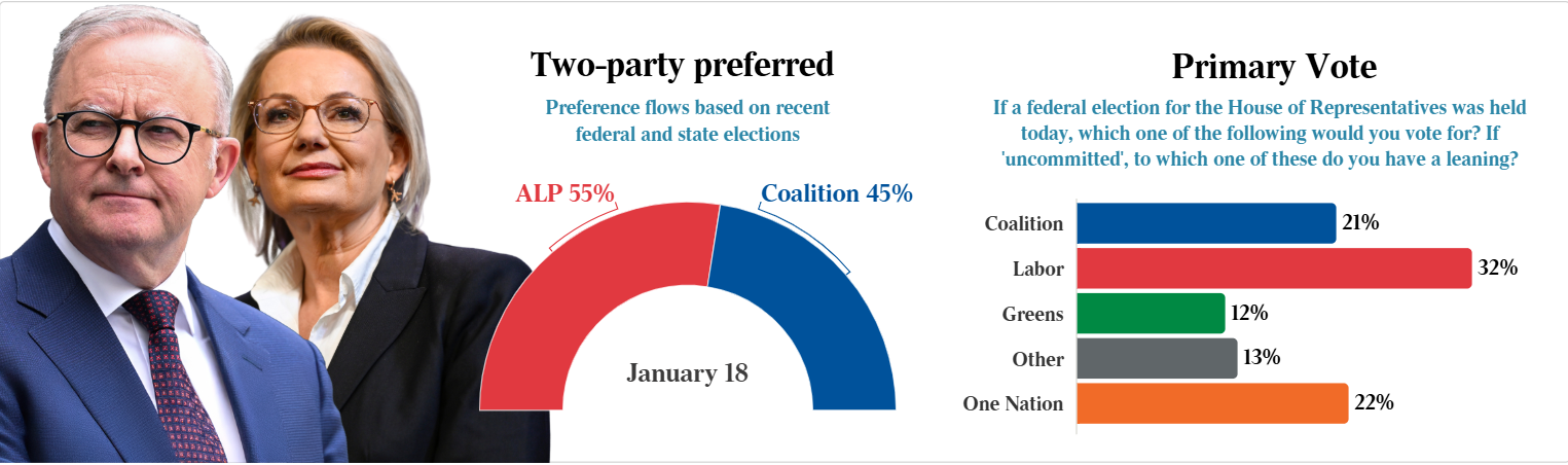 One Nation is now outpolling the Coalition on primary vote, 22% to 21%.