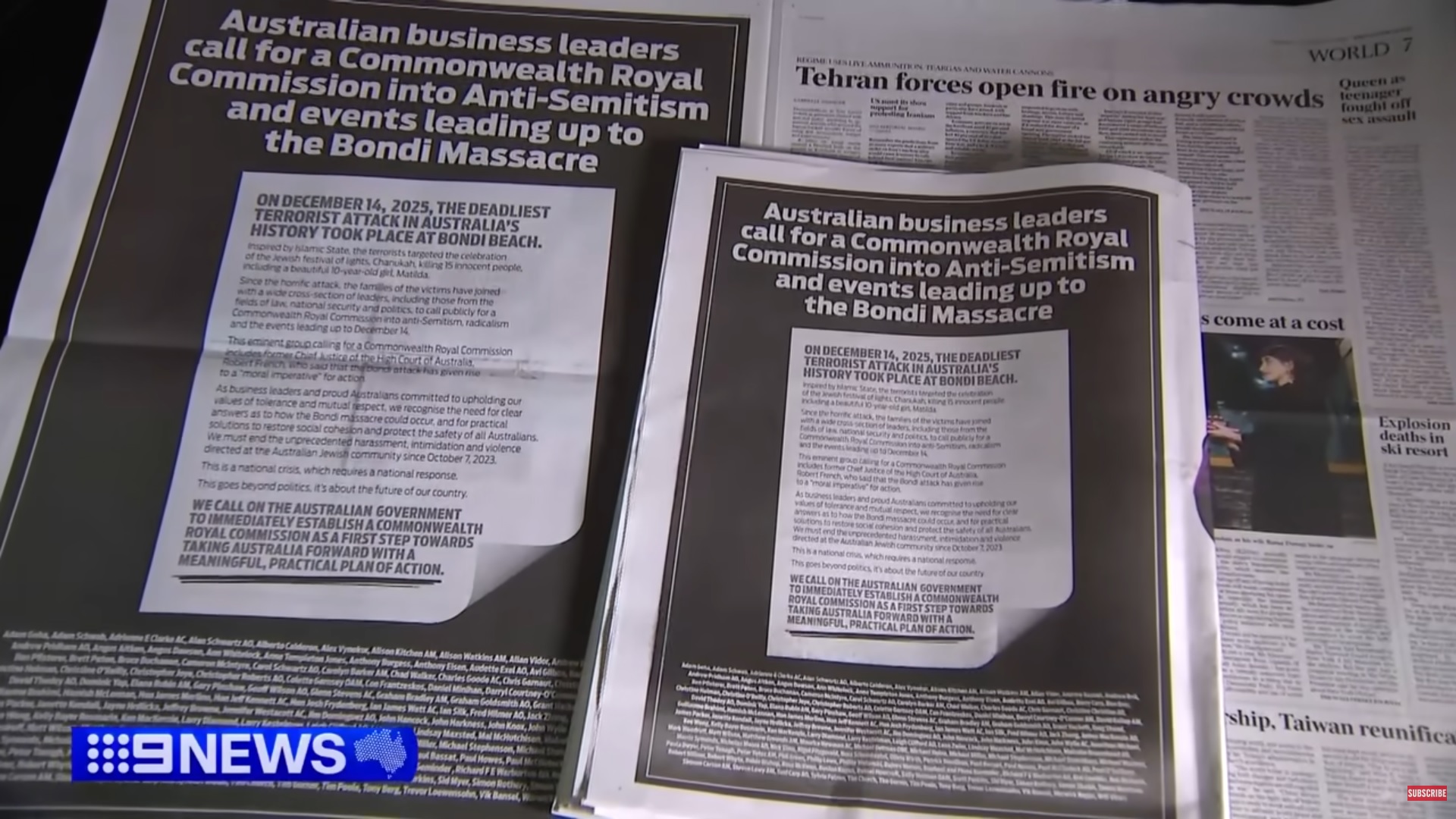 A. Advertising was taken out in the Murdoch Press on Friday 2 January 2026 calling for a Commonwealth Royal Commission into the Bondi Shootings and Anti-Semitism in Australia.