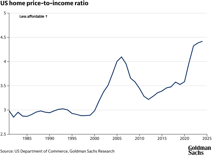 In the years since the onset of the pandemic, the cost of American housing has risen to its highest level ever relative to incomes, significantly exceeding even the peak of affordability concerns during the previous U.S. housing bubble.