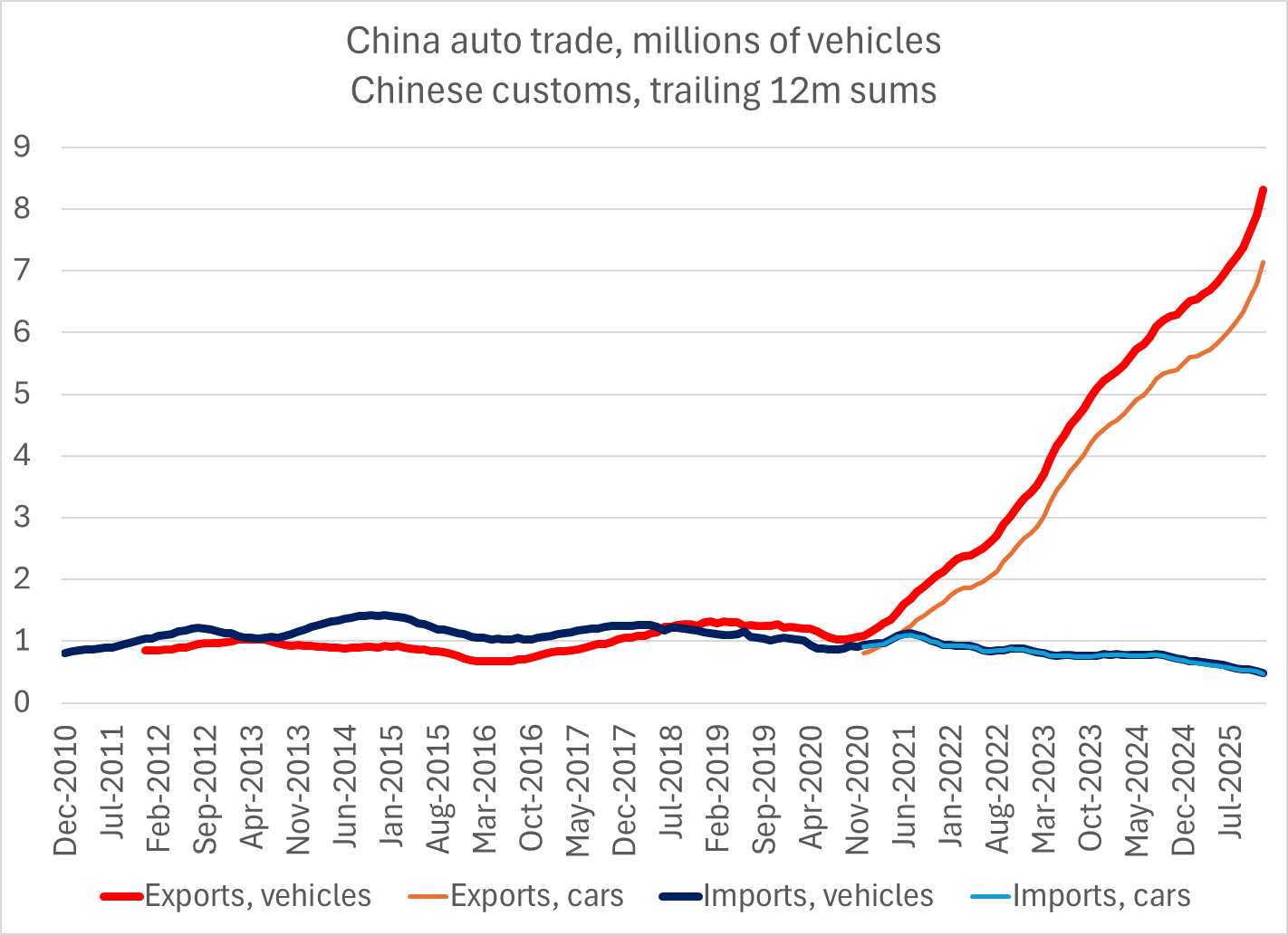 This would equate to slightly under 9 million cars being exported for the 2025 calendar year.