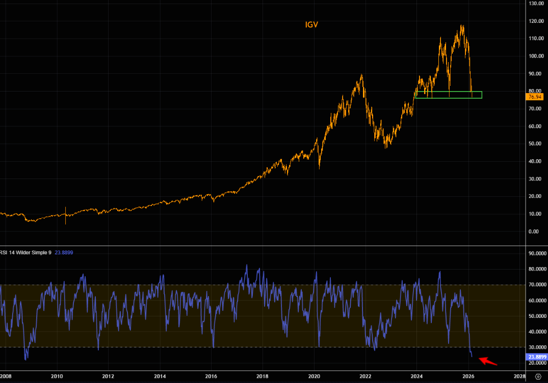 Charts from TME. The IGV software index is trading at 23 RSI. Seventh level of hell.