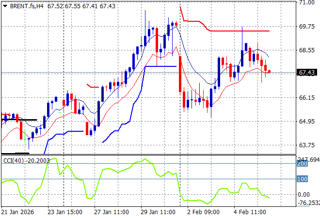 Oil markets have been on a multi week/monthly downtrend prior to the Venezuelan invasion but shot out of the gate last week with some big gains before settling into a sideways pattern and then breaking down when the Iranian war premium was discounted. However the bombs may yet start falling again although Brent crude fell back to the $67USD per barrel level overnight: