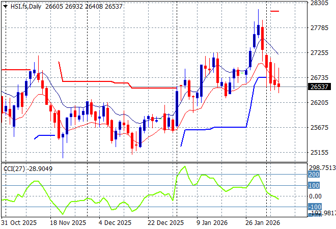 Looking at stock markets from Asia from yesterday’s session, where mainland Chinese share markets were down sharply in the afternoon session with the Shanghai Composite off by nearly 1% to cross back below the 4100 point level while the Hang Seng Index is off more than 1.3% to 26506 points.