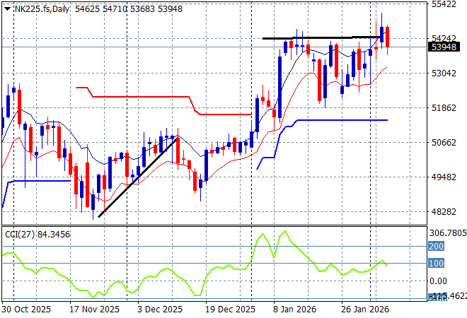 Japanese stock markets were pulling back as well with the Nikkei 225 down nearly 1% to cross below the 54000 point level.
