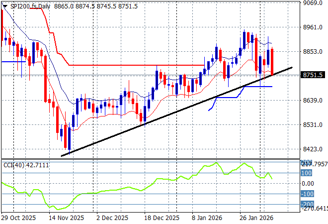 Australian stocks were the best performers relatively speaking with the ASX200 down just 0.4% to 8879 points with SPI futures down by at least 1% due to the continued falls on Wall Street overnight.