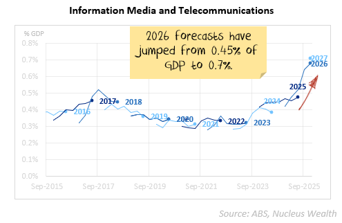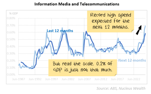 What I really want to know is how big the IT / datacentre boom is in Australia. In the US it looks to have added 1%+ of GDP, in Australia it looks more like 0.25%, maybe stretching to 0.3% next year. Better to have it than not, but not enough to move the needle.