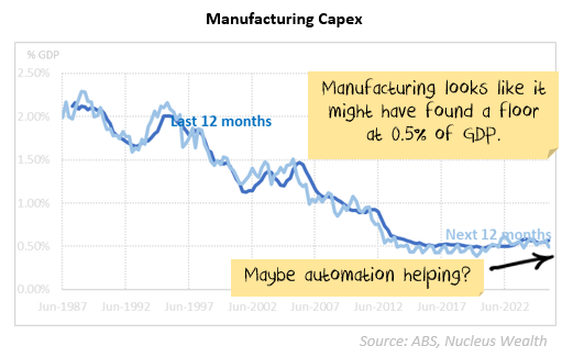 I’ve been having a second look at the private capital expenditure (capex) forecasts for Australia released yesterday. Capex is a key driver of economic cycles in Australia and getting an accurate read is critical to understanding the Australian economy.