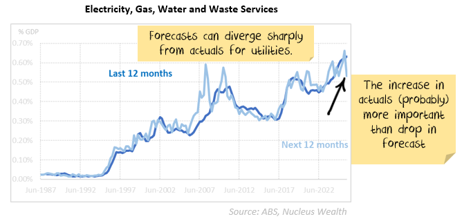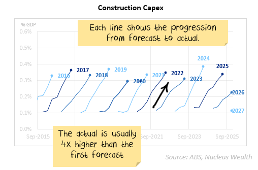 Another disclaimer that while many subcomponents of capex have a decent forecasting record, adding the good ones with the bad ones to create an aggregate number doesn’t fix the underlying problems. Non-mining capex aggregates are chronically badly forecast: