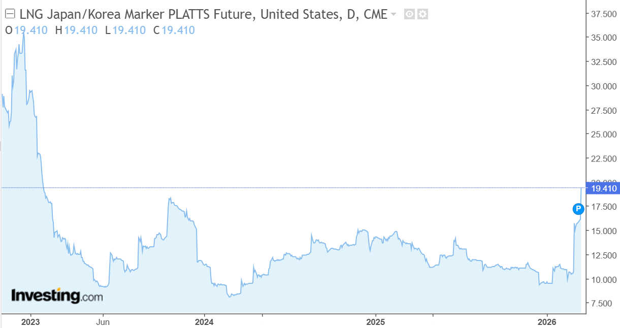 With the news last night that Iran bombed and set ablaze the huge UAE Shah gas field, LNG prices are on the march higher across the world.