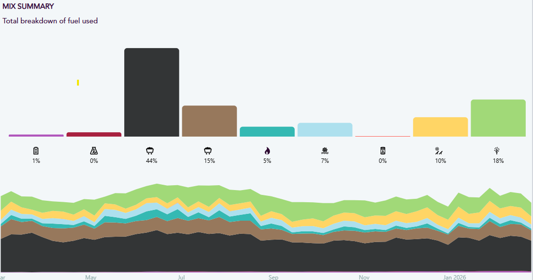 The fuel mix suggests weak demand owing to good weather and even weaker gas usage.