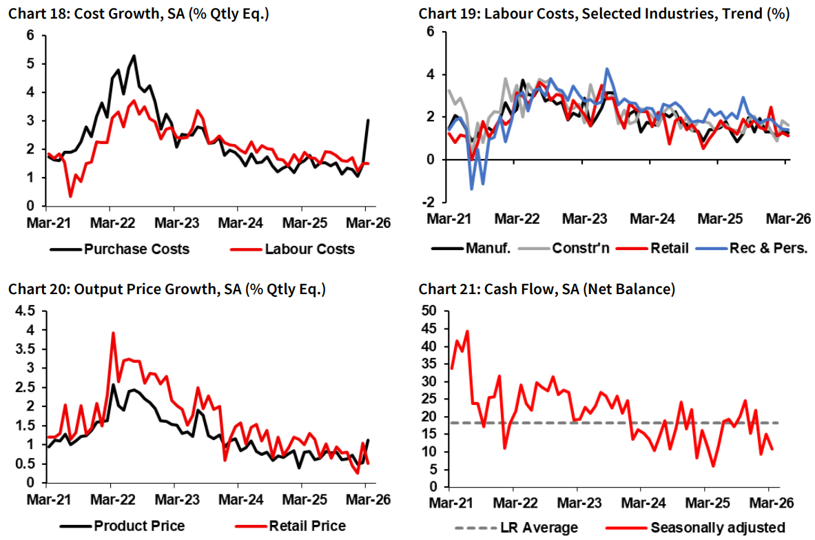 The NAB survey was equally bad for input costs, though it looks like businesses are struggling to pass it through in price rises.