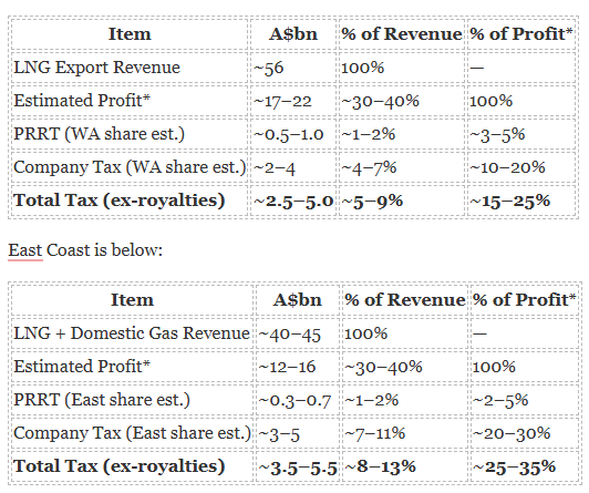 Does the gas cartel pay enough tax? You tell me. The following are ex-royalties, which are not taxes.