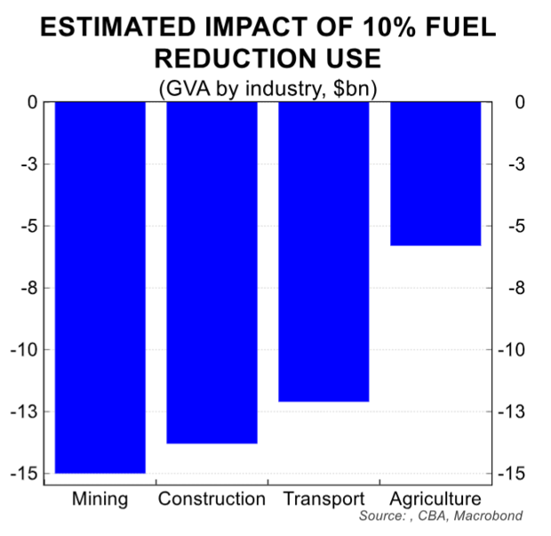 Australian imports of fuel are not particularly large, at 1% of petrol and 7% of diesel.