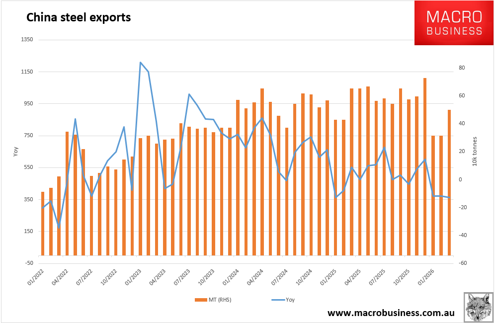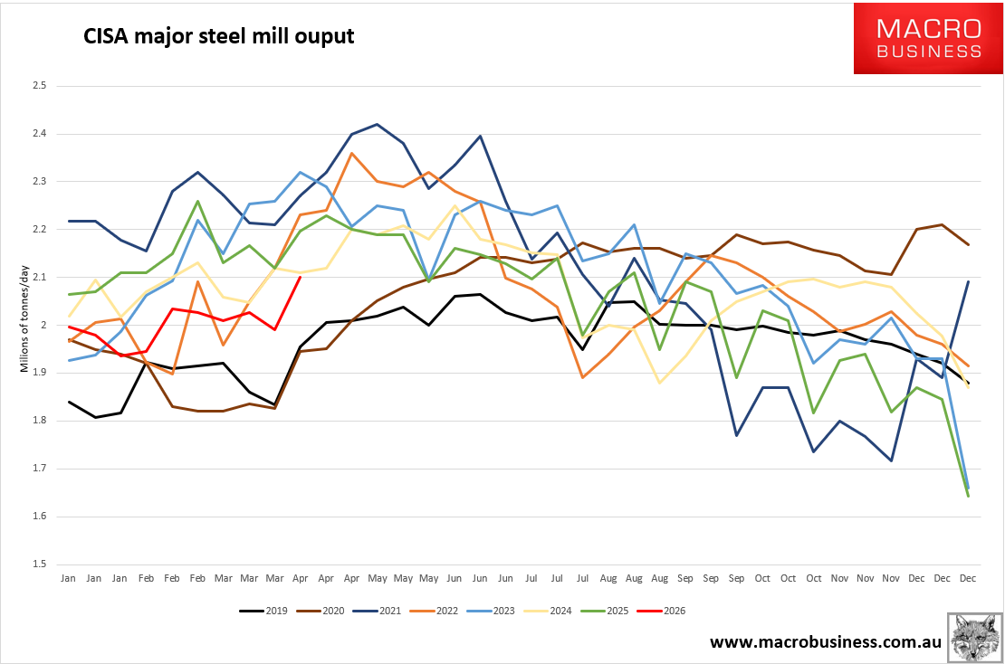 Early February, CISA steel output finally bounced a bit, but is still down 6.2% YTD.