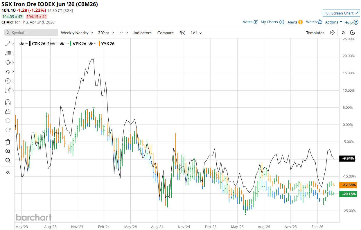 The ferrous complex is still agitating around oil, but the jaws are pretty wide, even accounting for increased shipping costs.